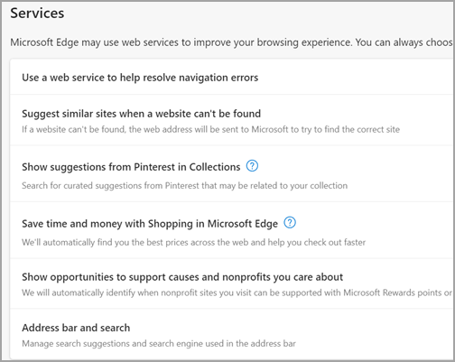 - Step 4: Scroll all the way down to the Services section and select Address bar and search.